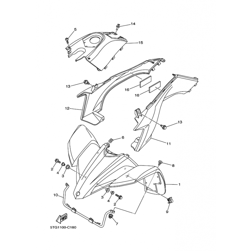 Soporte de guardabarros delantero original Yamaha YFZ450 (n10)